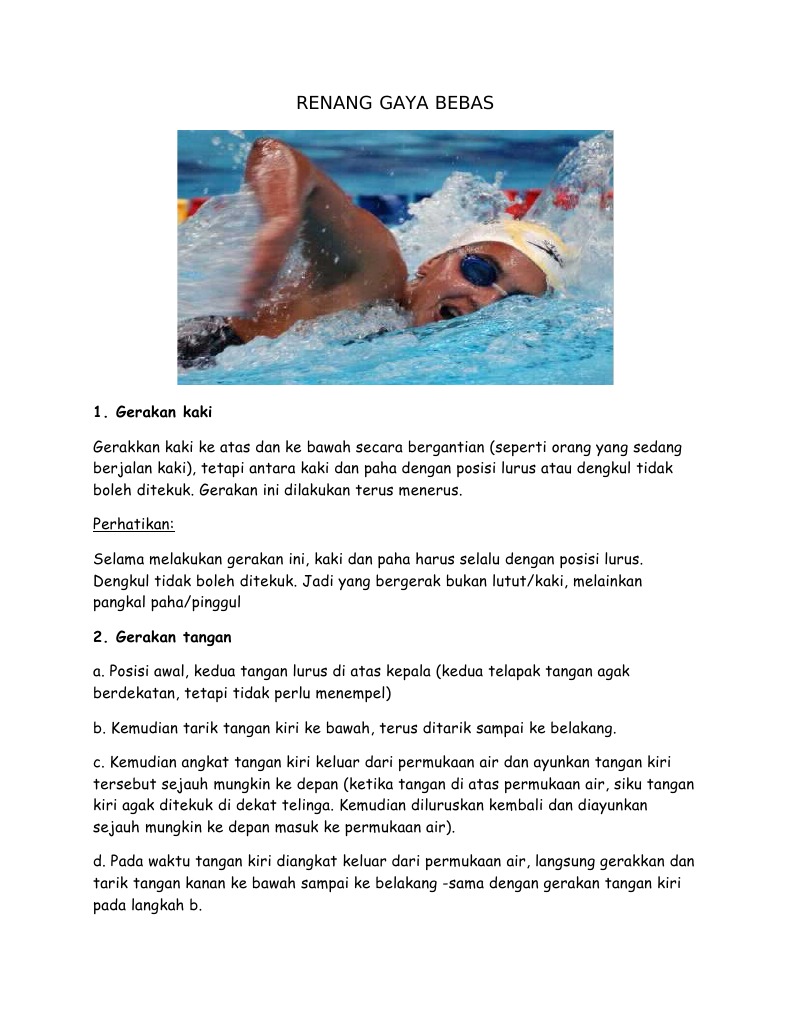 Meluncur Dalam Renang Gaya Bebas. Pengertian Cara Renang Gaya Bebas atau yang biasa disebut juga dengan istilah front crawl crawl stroke merupakan gaya renang yang paling cepat dibandingkan gaya kodok punggung dan kupu-kupuDalam renang gaya bebas posisi tubuh yang perlu diperhatikan adalah. Melengkung ke bawah Jawaban.