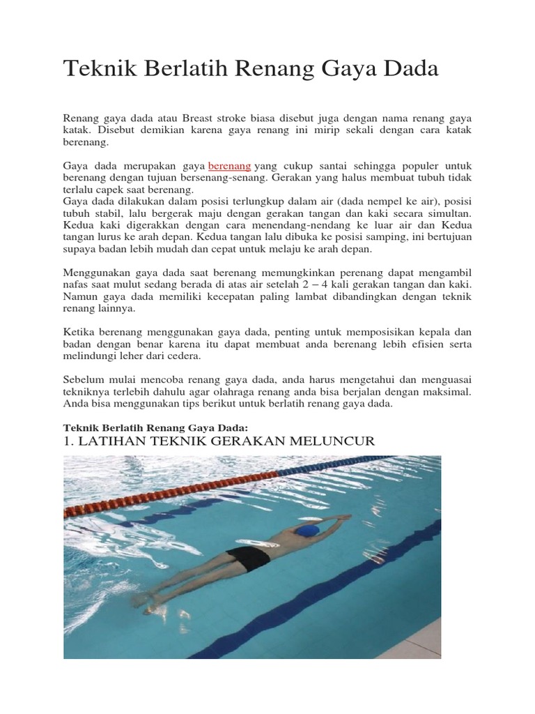 Sebelum Belajar Renang Gaya Dada. Tersebut dinamakan Persatuan Renang.